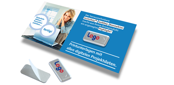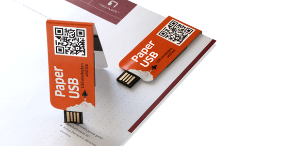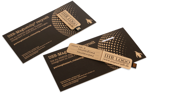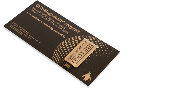 Fest fixiert im Briefumschlag und dennoch leicht entnehmbar. Der original USB-Magnetclip z.B. integriert im DIN Lang Format Flyer. Besonders nachhaltig durch Verwendung von recyceltem und unlaminiertem Papier.- Portooptimierter Versand möglich < 20g
